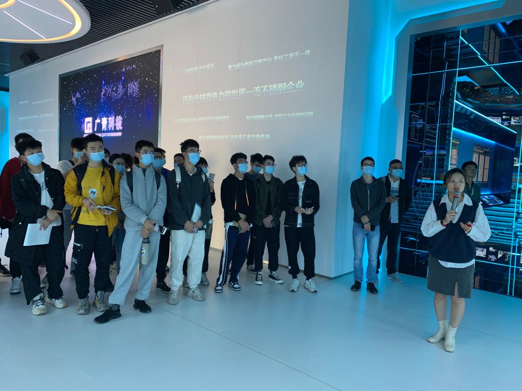 12月8日,材料学院师生赴广东广青金属科技有限公司(以下简称广青科技)参观学习。广青科技是由全国500强广东省属国有企业广东省广新控股集团和世界500强民营企业青山控股集团共同投资成立的大型不锈钢生产企业,公司位于广东省阳江高新技术产业开发区港口工业园,总投资约55亿元,年产值超过200亿元,现有员工4300多名,位列2020年广东省企业500强第99位、制造业100强第37位,入选广东省创新企业100强,陆续获评广东省大型骨干企业、高新技术企业、广东省文明单位、全国模范职工之家、全国首批绿色工厂、全国五一劳动奖状等多项荣誉称号。师生们参观了广青科技成果展厅和热轧生产线,看到一块块烧的通红的钢坯经过加热-除磷-粗轧-精轧-控制冷却-自动卷绕工艺流程变成一卷卷钢带,同学们发出一声声惊叹,对金属材料专业有了第一次感性认识。