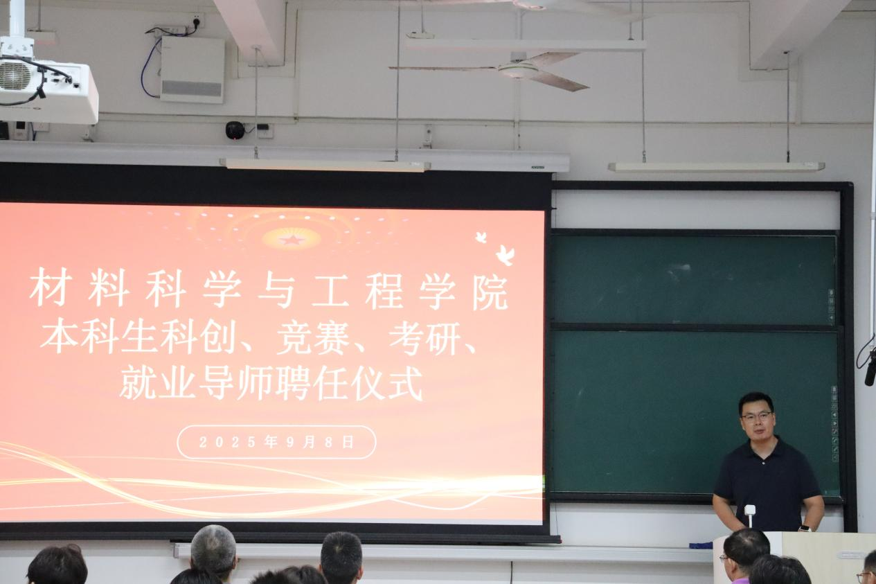 为进一步提升学生创新能力,激发学生参与竞赛热情,助力学生考研及就业,广东海洋大学材料科学与工程学院于2025年9月8日晚在慎思楼A101室举办了本科生科创、竞赛、考研、就业导师聘任仪式。