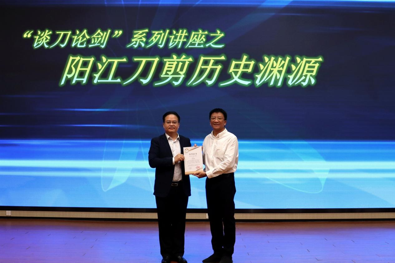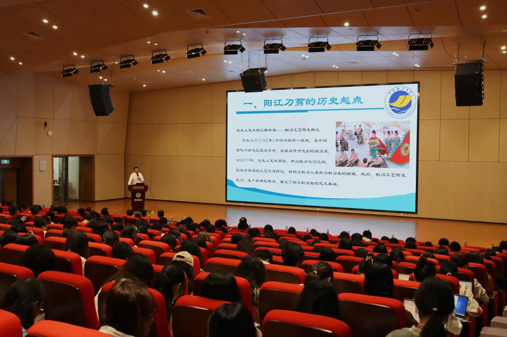为帮助学生学习了解五金刀剪行业,激发专业兴趣,加深从事相关生产或研究人员对行业的理解和认知,2023年11月15日下午,由广东海洋大学材料科学与工程学院师文庆院长组织,在阳江校区管委会陈永强副主任的大力支持和关心关怀下,特邀阳江市佰伦实业有限公司总经理、阳江市政协常委谭中明先生前往校区开展讲座,与师生一起探究阳江刀剪文化的历史渊源、发展过程和未来展望。