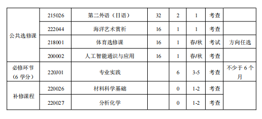 毕业应修总学分不低于32学分,其中,公共基础课7学分,专业必修课不低于12学分,选修课不低于7学分,实践环节不低于6学分。全日制研究生课程学习应在第1-2学期内完成,非全日制研究生的课程学习时间可适当延长。课程成绩60分以上(含)为及格,成绩及格取得相应学分。跨学科或同等学力的研究生补修两门本科主干课,补修课只记成绩不计学分。