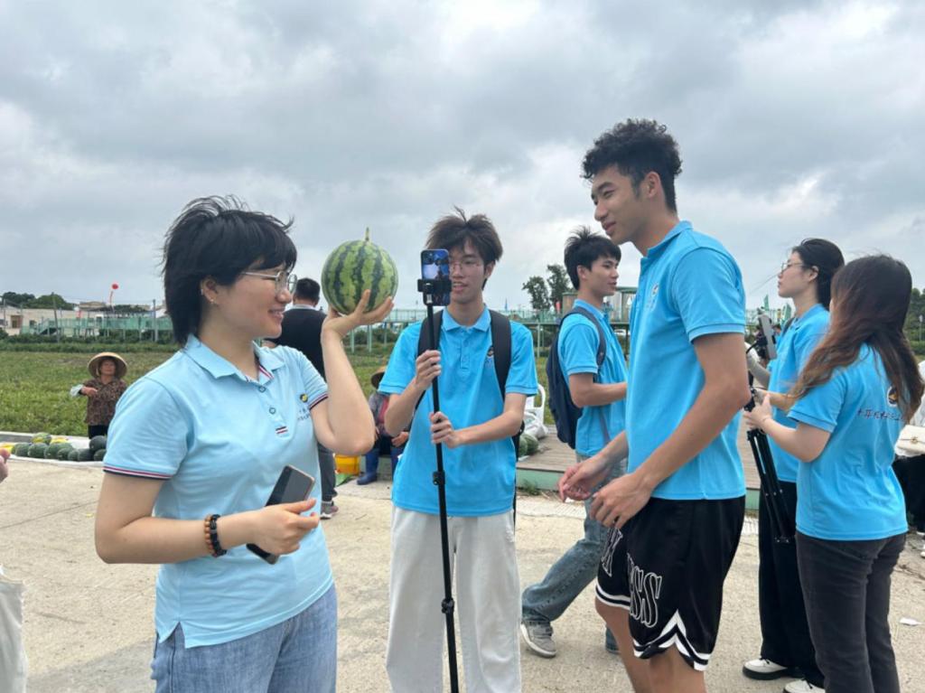活动期间,同学们以小组为单位开展实践,首先参观2024阳西·上洋西瓜节全媒体活动现场,学习现场自媒体达人的直播带货方式方法,并拍摄记录活动素材、选取合适的直播场地,为后续开展网络营销直播做准备。随后,各小组同学围绕西瓜节主题分别开展直播实践,进行直播推介。