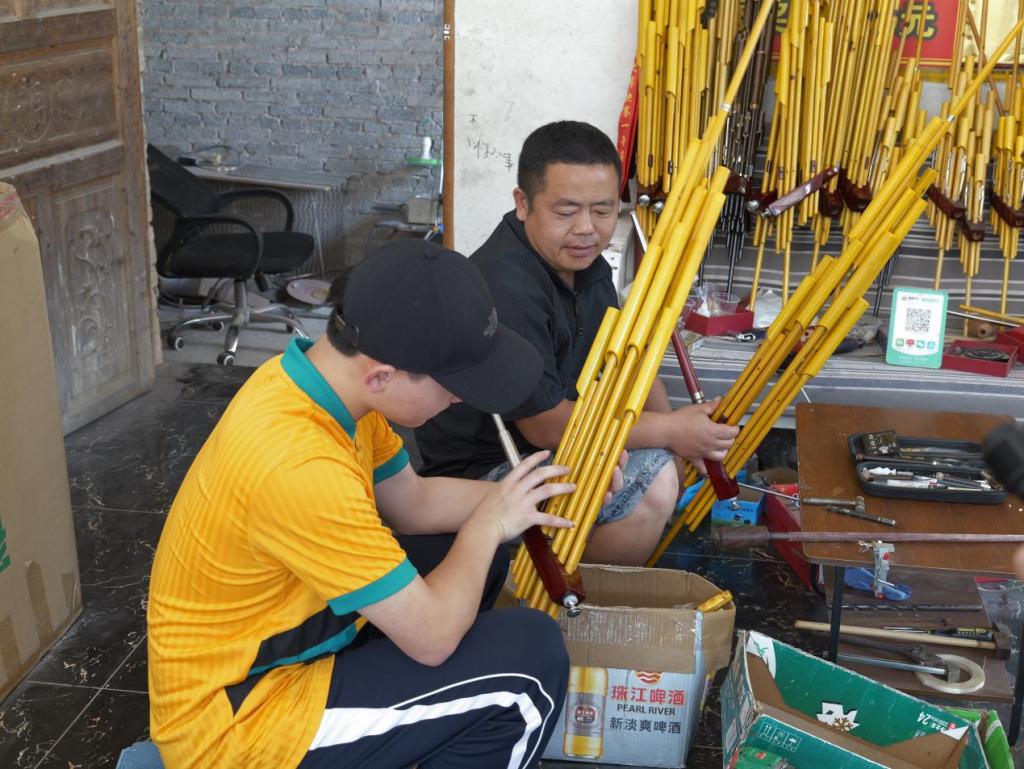 图7 芦笙师傅向黔艺承光实践队队员讲解芦笙结构