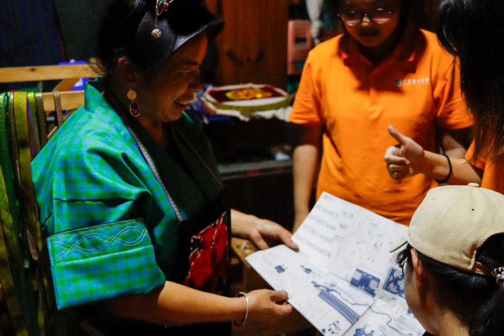 图6 潘燕莲向黔艺承光队展示中日贵州旅游手册