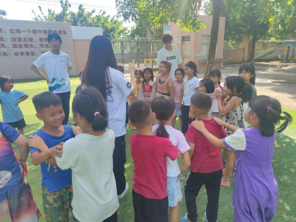在乐安小学,团队开展了八天的支教工作。结合成员的专业优势以及实践地的实际需求,规划了 “特色推普课程、特色通识课程、特色美育课程” 三大板块,其中包含素质拓展、美术音乐教学、心理辅导、漆艺品鉴等内容。此项目落地于广东省阳江市双捷镇乐安小学,当地教育资源较为短缺,学生大多来自云南少数民族地区,日常交流多使用民族语言。团队以基础教育为途径,以民族文化为载体,积极响应国家推广普通话的号召,为乡村美育建设添砖加瓦。