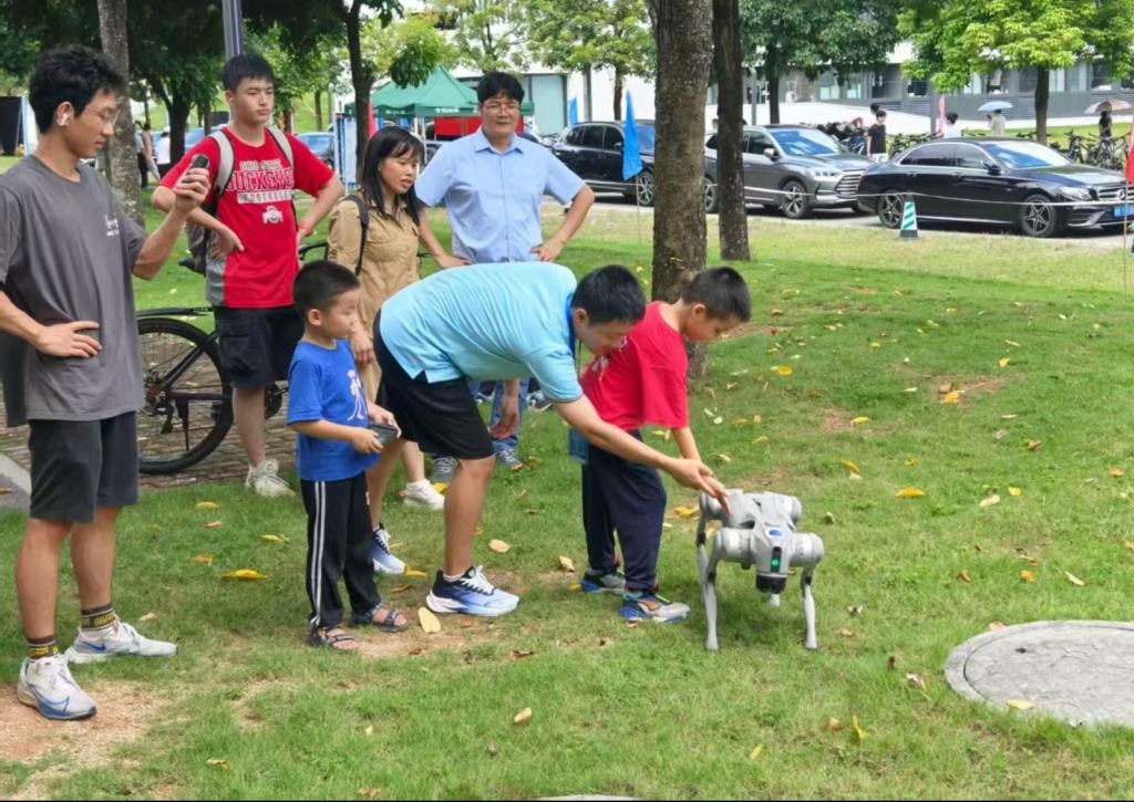 为进一步激发学生学习热情,学院还精心设置了“双创”展示区。无人机、脑机接口和水下机器人等高科技设备吸引了大批学生和家长参与体验。其中,展示的机器狗最为吸睛,蹦跳作揖萌翻全场。一位小朋友追着喊:我以后也要学计算机,考入广东海洋大学,做出更酷的机器人!