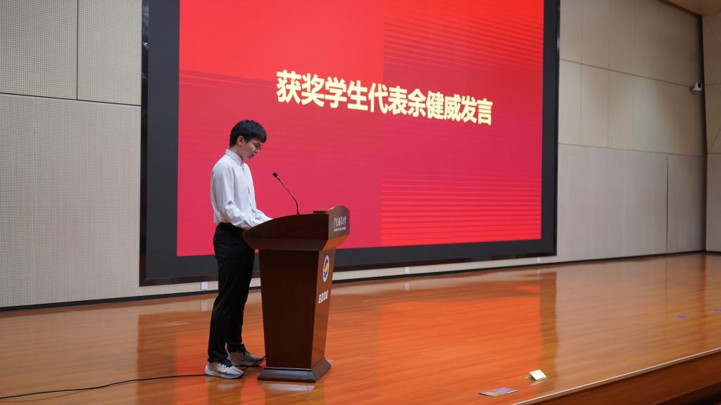 阳江校区党委副书记陈永强鼓励同学们要继续保持对知识的渴望和对未知的好奇,勇于探索、敢于创新,不断拓宽自己的视野和领域,带动更多的同学参与到科技创新和实践活动中来,共同营造浓厚的学术氛围。指导老师代表邓超博士从坚定理想信念、强化师德师风、锤炼过硬本领、常怀仁爱之心几方面出发,号召广大教职工要成为忠诚之师、有德之师、博学之师、有爱之师。获奖学生代表余健威表示今后会继续努力,坚定目标,刻苦钻研,继续书写属于年轻一代的辉煌篇章。
