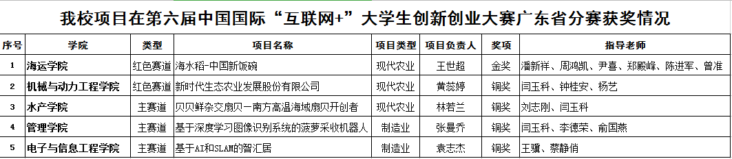 林晓敏针对我校“互联网+”大学生创新创业大赛工作进行了总结和部署。他肯定了“海水稻-中国新饭碗”项目团队努力拼搏、发挥出色,荣获金奖,取得了我校参加“互联网+”大学生创新创业大赛的最好成绩,为学校争光;同时要进一步构建融教学、研究、训练、实践和孵化框架为一体的、完整的创新创业体系,以政策为导向,各部门形成合力,扎扎实实做好工作,打造更多的“标志性”创新创业项目;还要重视创新创业赛事宣传和发动,在政策引领、经费保障下,甄选好项目参加比赛,争取获得好成绩,进一步提升了学校影响力和知名度;我校在本届“互联网+”大学生创新创业大赛广东省分赛取得1金4铜。虽然取得了突破,但相比兄弟院校,还有许多不足,在创新创业方面的差距仍然十分巨大,希望以本届比赛为新的起点,再接再厉,不断进步。