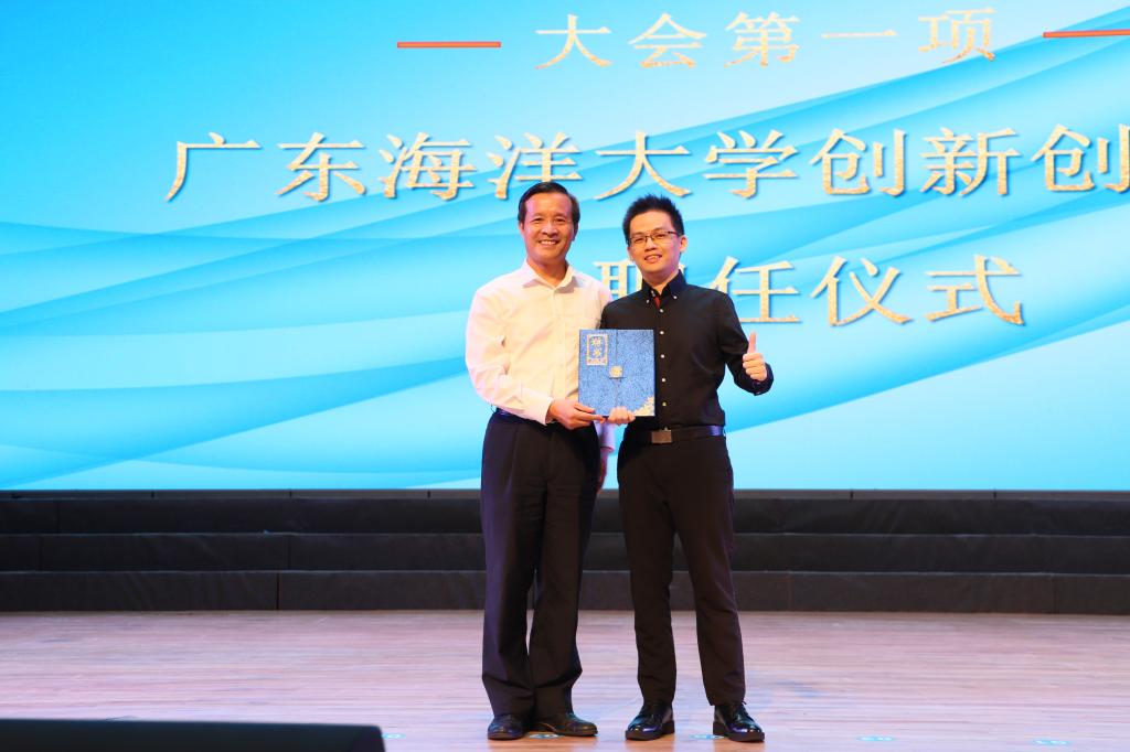 会上,潘新祥向黎文祥颁发证书,聘任其为学校大学生创新创业导师。