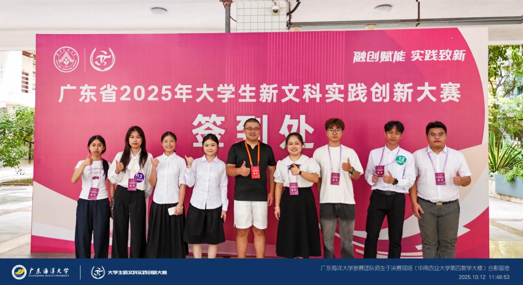 10月12日,由广东省教育厅指导,广东省高等教育学会、华南农业大学主办,华农公共管理学院协办的广东省2025年大学生新文科实践创新大赛现场决赛在华南农业大学举行。大赛汇聚了来自39所高校的219个项目,经过竞争激烈的路演答辩比拼,广东海洋大学的参赛团队发挥出色、不负众望,一举斩获2项金奖、3项银奖和3项铜奖,创下我校在该项赛事中的历史最佳成绩!