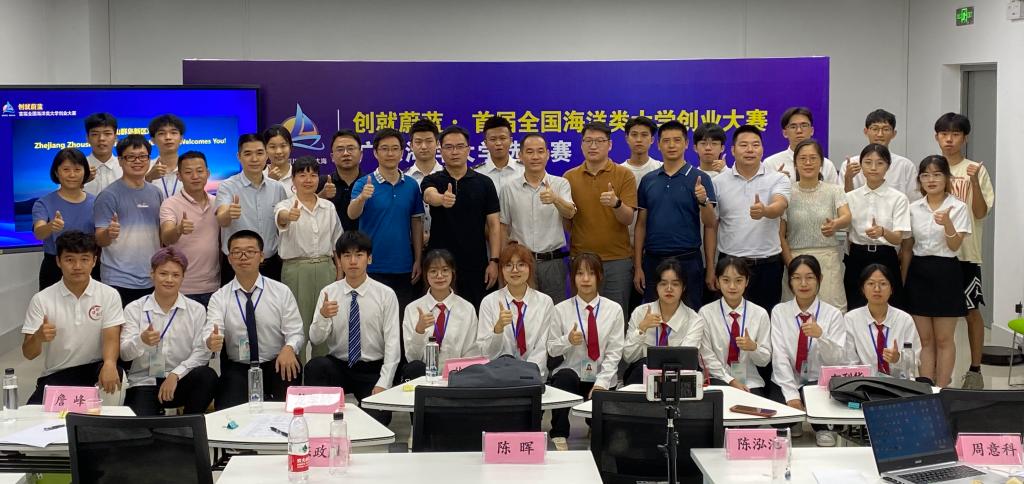 6月21日上午,由中国海洋学会指导,舟山市人力资源和社会保障局、浙江海洋大学主办的创就蔚蓝•首届全国海洋类大学创业大赛(广东海洋大学选拔赛决赛)在海创楼三楼实训室举行。比赛旨在发挥海洋类高校海洋创业优势,促进全国海洋大学大学生创业领域的交流学习,提升舟山城市创业氛围。大赛设海洋文创专项赛、海洋智造专项赛、海洋创业综合赛三大赛道。舟山市就业管理中心副主任陈晖、浙江海洋大学创业训练中心主任陈政融作为嘉宾出席本次比赛。