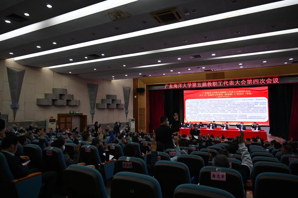 12月2日下午,学校在湖光校区广学楼多功能厅召开第五届教职工代表大会第四次会议,审议《广东海洋大学章程(核准稿)》。出席会议的正式代表、列席代表共183人。大会主席团常务委员会委员杨洲、潘新祥、曹俊明、叶春海、彭权群、林晓敏、刘东超、高秀梅、谭北平、宁凌、邓逢光、林宇出席会议并在主席台就坐。学校党委副书记、工会主席林晓敏主持会议。