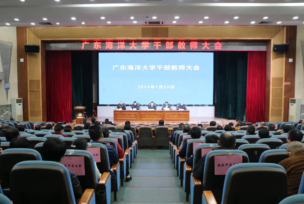 1月25日下午,学校在湖光校区广学楼多功能厅召开干部教师大会,开展校领导班子和校领导2023年度述职考核,并宣布正处级干部的任免职决定,学校党委书记杨洲主持会议并讲话。在校校领导出席会议,副处级以上干部和干部教师代表等参加会议。