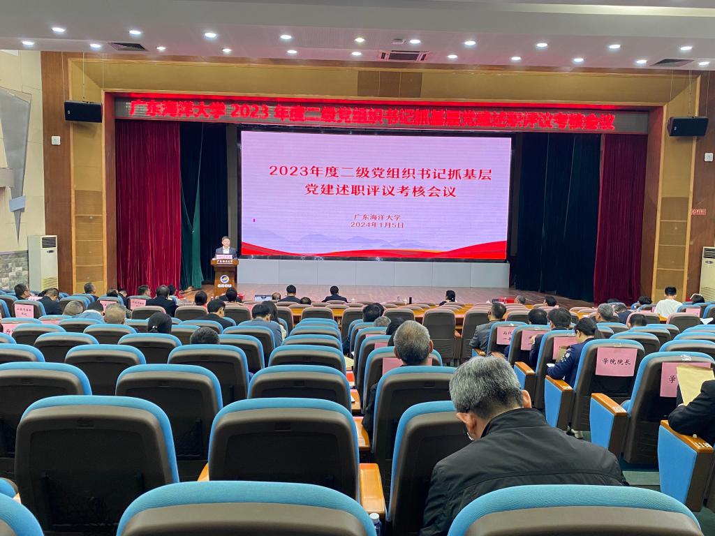 1月5日上午,2023年度二级党组织书记抓基层党建述职评议考核会议在湖光校区广学楼多功能厅召开。学校党委书记杨洲主持会议并作点评和总结讲话。学校领导、党委常委、二级党组织书记、党群工作部门主要负责人、二级学院院长、部分“两代表一委员”、基层党员干部和师生代表等共约100人参加会议并现场评议打分。