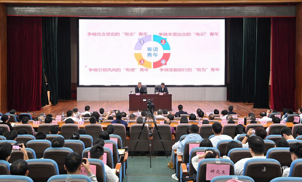 郑浩然、吴国雄等市领导,学校在家的校领导,机关、教辅、后勤单位(部门)和二级党组织主要负责人,马克思主义学院教师代表,辅导员代表、学生代表等400余人共同聆听了思政课。