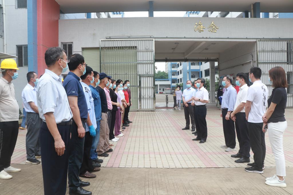 5月13日上午,学校领导曹俊明、潘新祥、彭权群、林晓敏、邓逢光、林宇等分别前往湖光校区校门、就业楼、学生公寓看望慰问安保及学工人员,向坚守在防控一线的工作人员表示诚挚慰问和亲切问候。