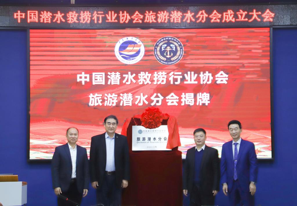 12月28日上午,中国潜水救捞行业协会旅游潜水分会成立大会暨一届一次会议在我校湖光校区水生生物博物馆报告厅举行。中国潜水救捞行业协会理事长宋家慧、深圳市德威胜潜水工程有限公司董事长徐根弟,我校党委书记杨洲、副校长邓逢光出席会议并为旅游潜水分会揭牌。