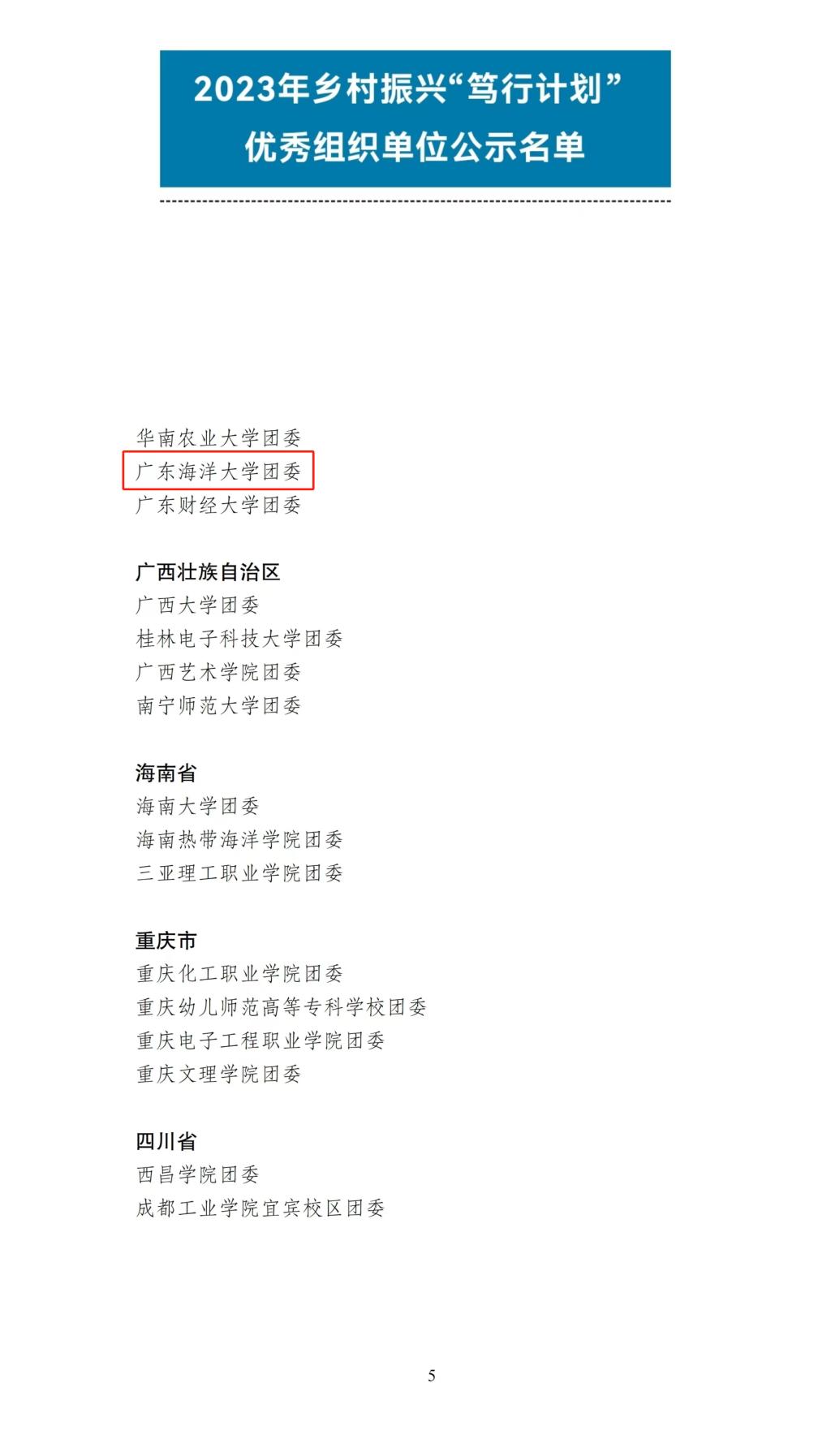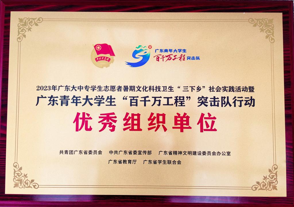近日,团中央公布2023年全国大中专学生志愿者暑期文化科技卫生“三下乡”社会实践活动中表现突出的优秀集体、团队和个人,校团委获评2023年全国大中专学生志愿者暑期文化科技卫生“三下乡”社会实践活动优秀单位、2023年乡村振兴“笃行计划”优秀组织单位(广东四所高校之一)、“镜头中的三下乡”优秀组织单位。1支实践队获评全国优秀团队,1名学生获评全国优秀个人。