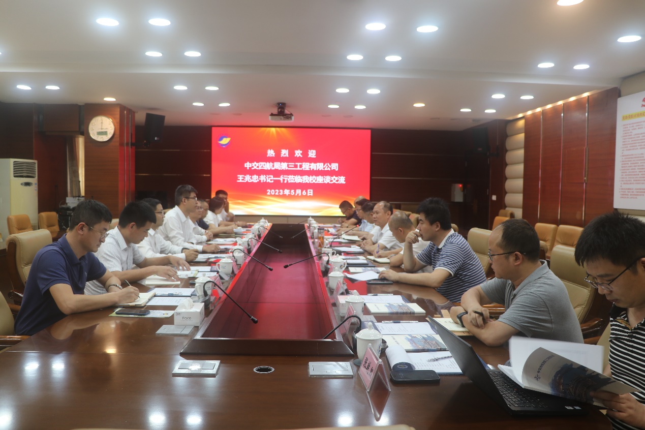 5月6日,中交四航局第三工程有限公司党委书记王兆忠一行来我校调研交流,校长潘新祥和副校长邓逢光分别会见了一行。双方就进一步深化校企合作进行座谈交流,省实验室建设办常务副主任、湛江湾实验室副主任洪鹏志、科技处处长颜云榕和相关学院负责人参加了调研座谈会。