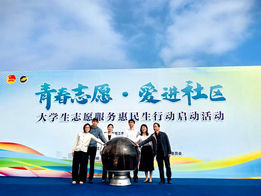 饶金艮代表团市委向活动的顺利启动表示祝贺,她指出,广东海洋大学团委与经开区团委迅速响应团市委的大学生社区志愿活动部署要求,走在前、做表率,积极探索社区志愿者校地共建模式。她向青年志愿者提出三点希望:一是下沉“青春网格”,在志愿服务中提升温度;二是赋能基层治理,在共建共治中展现力度;三是提升服务效能,在机制建设中凸显深度。郑一鸣在讲话中指出,学校高度重视志愿服务育人工作,致力推动志愿服务育人内涵化、规范化、常态化发展。此次大学生志愿服务惠民生行动是发挥共青团组织体系优势和实践育人特色,组织大学生有组织、常态化、就近就便开展社区实践的重要平台,是助力校地志愿者事业高质量发展的有效路径。希望海大志愿者通过此次行动围绕社区所需,大学生所能,展现担当作为,为推动经开区社区志愿者工作做出积极贡献。启动仪式上,与会领导共同为参与对接的18个社区和学院授旗。