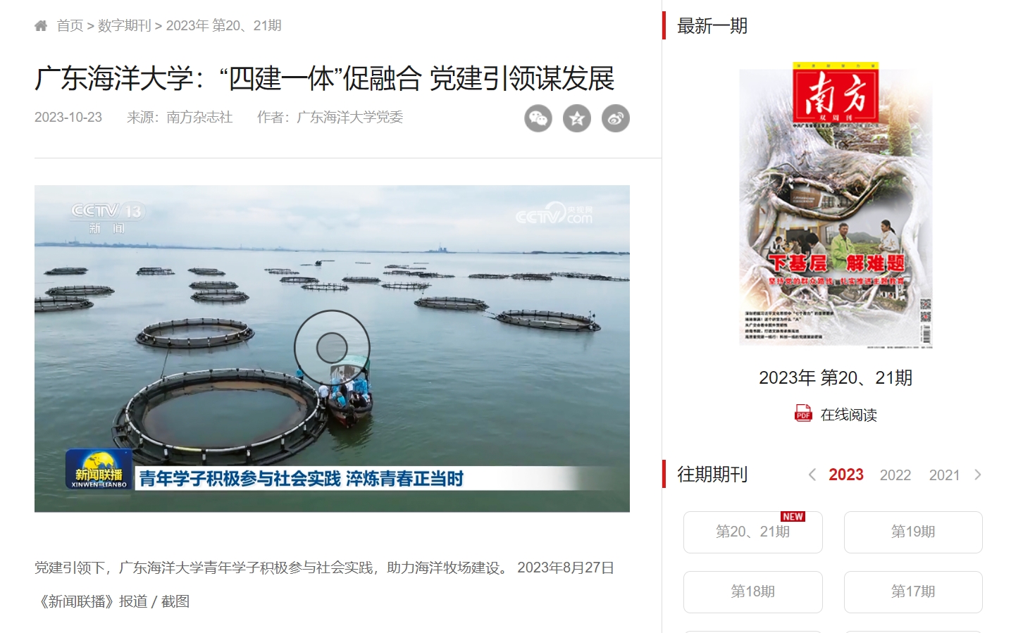 10月23日,中共广东省委机关刊物《南方》杂志刊发专题文章《广东海洋大学:“四建一体”促融合 党建引领谋发展》,展示了我校党委推动党建和业务工作相融互促的典型做法。