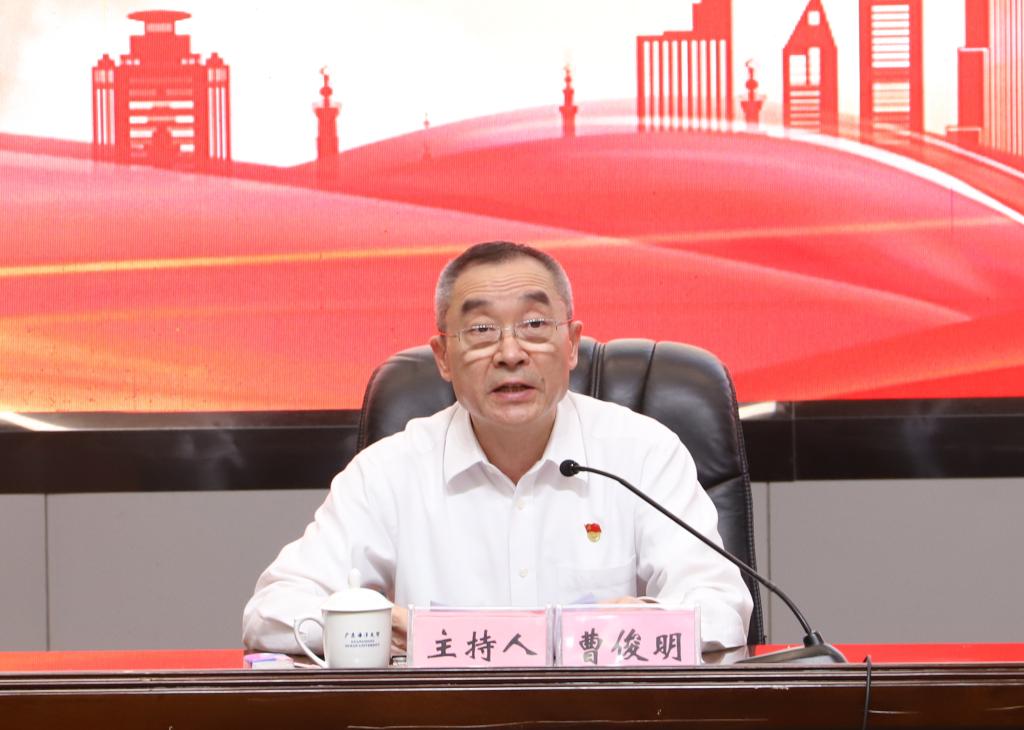 曹俊明强调,要切实提高思想认识,高标准高质量抓好学习宣传贯彻省第十三次党代会精神重大政治任务,为实现新使命新任务凝聚起强大思想动力。要精心谋划部署,综合采取党委会议、理论学习中心组学习会、理论报告会、党支部“三会一课”等形式迅速组织传达学习。各级领导干部要充分发挥表率作用,统筹抓好所在单位、分管系统的培训学习和调研督导工作。要广泛宣传宣讲,营造良好舆论氛围。要充分运用新媒体技术,积极开展网络宣传。要组织人文社科专家学者深入理论阐释,推出有质量有分量的理论文章。要积极发挥工会、共青团等群团组织优势,充分调动相关领域学习宣传的积极性。要加强监督检查,确保广大党员干部和教职员工学习贯彻全覆盖、无遗漏。