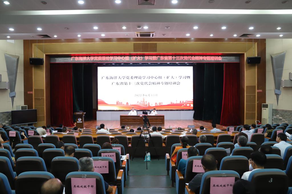 6月13日,学校在湖光校区教学主楼多功能厅召开学校党委理论学习中心组(扩大)会议,学习贯彻广东省第十三次党代会精神,这也是学校省第十三次党代会精神专题培训班首场培训学习。省第十三次党代会精神省委宣讲团成员、省社科院党组副书记、院长王廷惠教授作了题为《奋进新征程 创造新辉煌 建功新时代》的宣讲报告。学校党委书记曹俊明主持会议并讲话。