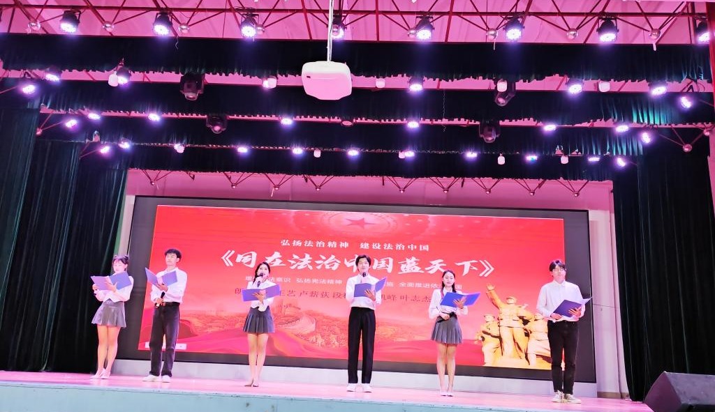 12月3日晚,宪法普法文艺宣传晚会在湖光校区小礼堂举办。节目内容包括普法演讲、法制宣传、普法话剧等。在主持人的领誓下,全体人员进行了宪法宣誓,约500人观看了晚会。