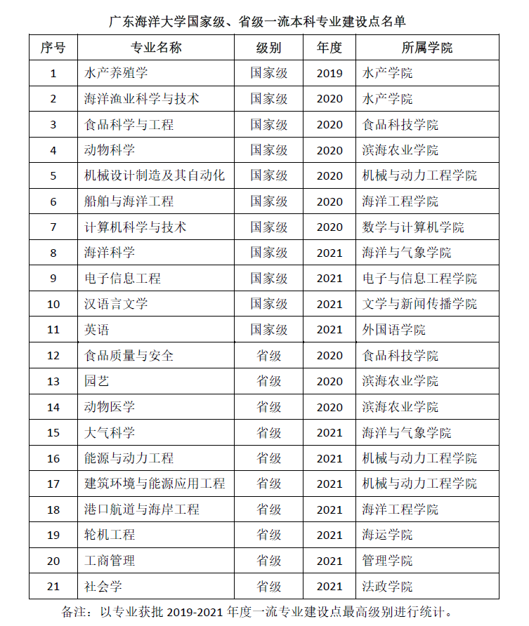 近日,教育部办公厅印发通知,正式公布了2021年度国家级和省级一流本科专业建设点名单。我校海洋科学等4个本科专业入选2021年度国家级一流本科专业建设点,大气科学等7个本科专业入选2021年度省级一流本科专业建设点。截至目前,我校共有21个专业入选国家级、省级一流本科专业建设点,其中国家级一流专业建设点共11个。分布在农学、理学、工学、管理学、文学、法学等6个学科门类,覆盖13个学院。