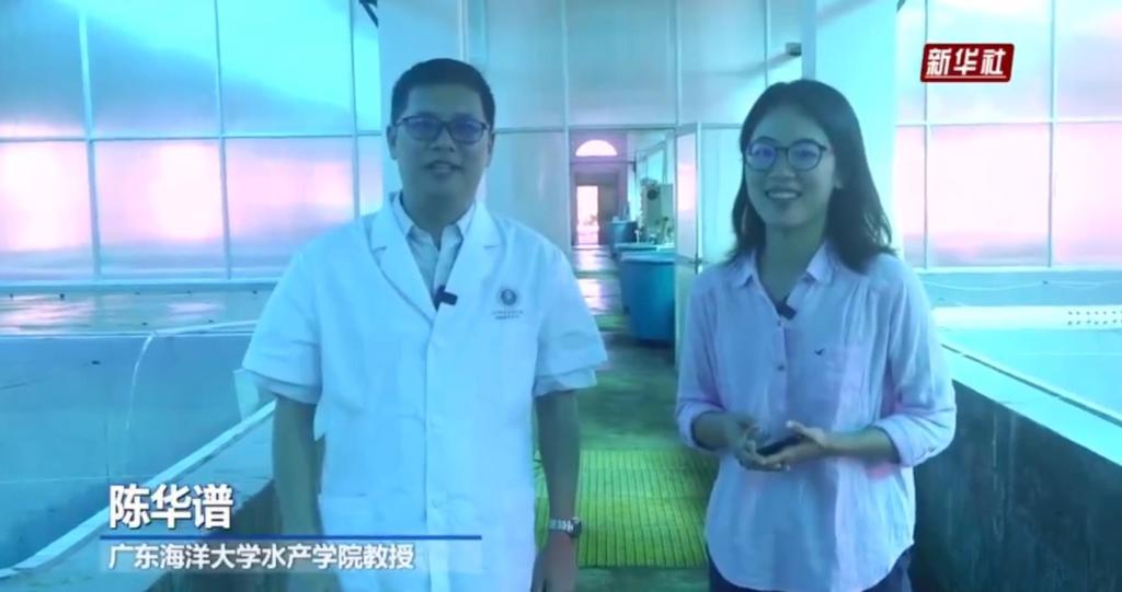 9月22日上午,新华社新闻客户端刊播直播节目《依海而兴,向海图强:“耕海牧渔” 筑牢“蓝色粮仓”》,对我校水产学院刘建勇教授、陈华谱教授进行采访,并对广东海洋大学在水产育种和水产养殖方面的工作亮点,以及助力海洋牧场建设的工作成效进行了展示。