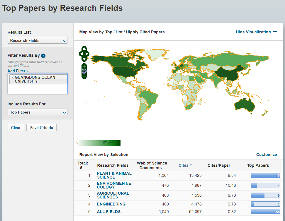 据统计,我校植物学与动物学学科此次接近度为430.83%,较2023年3月上升117.71%。农业科学学科接近度136.78%,较2023年3月上升46.64%。工程学学科接近度134.64%,较2023年3月上升23.98%。环境/生态学学科近十年共发表ESI论文476篇,总被引频次4987次,其中篇均被引次数为10.48次,4篇高被引论文,接近度为104.27%,较2023年3月上升34.05%。从全球排名来看,我校比上期全球排名进步62名,在省内高校中进步幅度明显。重点优势学科的强劲发展,彰显着我校学科建设水平和实力日益提升,为建设国内一流国际知名的高水平海洋大学奠定了坚实基础。
