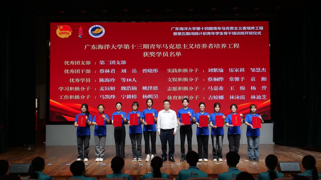 活动在激昂慷慨的青年献词《挺膺担当强国有我》中拉开序幕。邓逢光为第十四期“青马工程”和第五期“鸿鹄计划”青年学生骨干培训班授旗。王明对、植秀成为获得第十三期“青马工程”和第四期“鸿鹄计划”的优秀集体和个人颁奖。