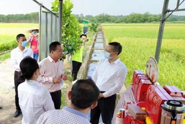 10月21日上午,广东省人大常委会副主任张硕辅到我校位于遂溪县卜巢村的海水稻原生境保护圃基地调研,湛江市人大常委会副主任陈云等领导陪同调研。