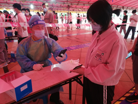 5月8日,我校湖光校区所在地麻章区在全区范围内开展大规模核酸检测。接到麻章区卫健局要求派医护人员支援的通知后,校门诊部闻令而动,门诊部主任田国庆迅速召集干部商议,克服医护人员不足的困难,最大限度抽调了10名疫情防控经验丰富的医护人员组成支援队,分组前往麻章区湖光镇鹿渚村文化广场、临东文化中心、湖光公园等各个核酸检测点,助力麻章区大规模核酸检测筛查工作。