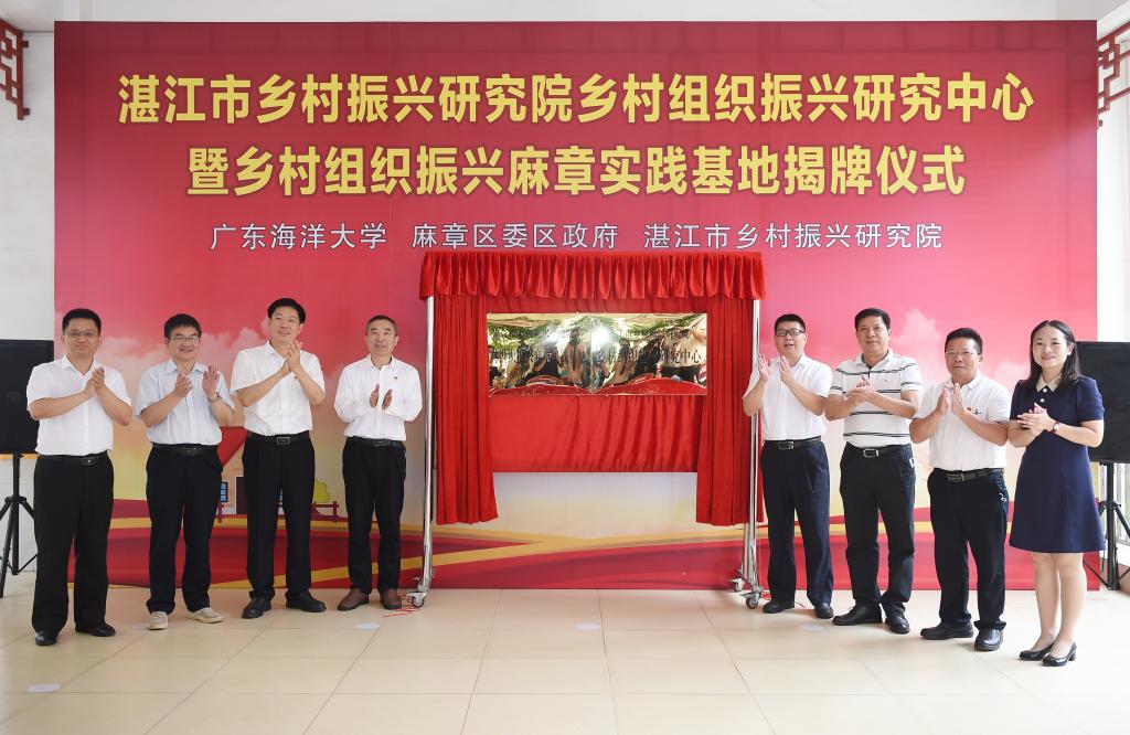 为落实乡村振兴战略发展规划,我校依托自身及相关高校、科研院所各自优势,领衔组建了湛江市乡村振兴研究院,作为学校以科技创新赋能区域经济社会高质量发展的重大举措。在湛江市农业农村局等相关部门支持下,研究院于4月30日揭牌成立。本次揭牌的乡村组织振兴研究中心是研究院下设的12个研究中心之一,也是首个挂牌成立的中心。中心由我校马克思主义学院牵头成立,与麻章区委组织部共建,主要开展湛江市乡村组织振兴、党史党建、政治文化、政治理论和乡村治理等方面研究,同时成立乡村组织振兴麻章实践基地,以麻章乡村为切入点,集聚人才,开展组织振兴实践,建设“麻章样板”,通过校地共建加强组织振兴课题研究应用推广,服务全市的乡村振兴战略实施。