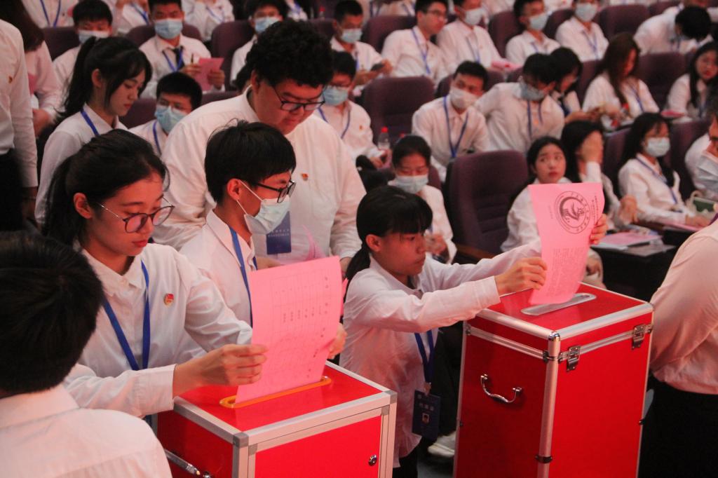 闭幕式后,第七届学代会常任代表和学生会主席团成员召开了第一次会议。