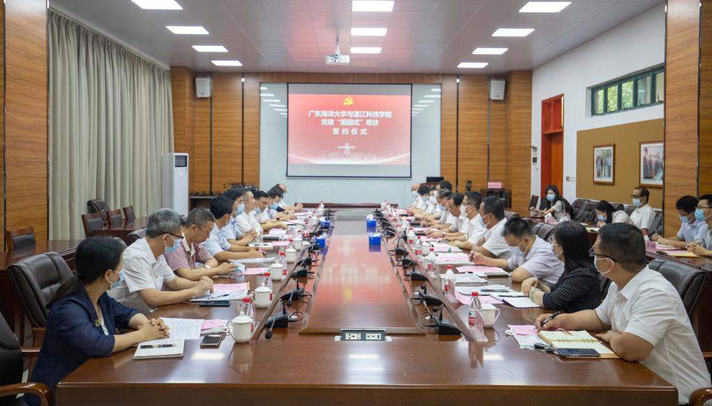 为贯彻落实中共广东省委教育工委关于开展新一轮(2022-2024年)公办高校与民办高校党建“组团式”帮扶工作文件精神,根据安排,我校将对湛江科技学院开展为期三年的对接帮扶。经多次沟通协商,双方就党建结对帮扶的内容、举措与目标等达成了共识。7月7日下午,我校与湛江科技学院党建“组团式”帮扶签约仪式在湛江科技学院致知楼会议室举行,我校党委书记、党建“组团式”帮扶工作领导小组组长曹俊明,党委常委、组织部部长林宇及有关单位、部门负责人、湛江科技学院领导和有关人员参加活动。