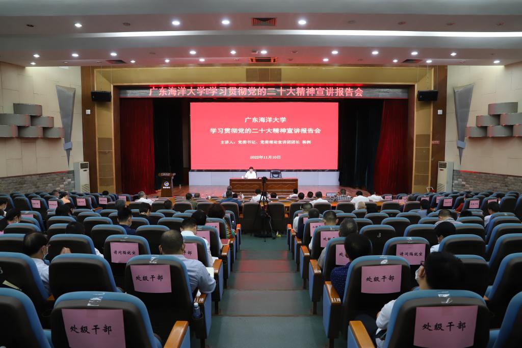 11月10日下午,全校学习贯彻党的二十大精神宣讲首场报告会在湖光校区多功能厅举行。学校党委书记、理论宣讲团团长杨洲为干部师生作了题为《学习贯彻党的二十大精神 为推动学校高质量发展而团结奋斗》的宣讲报告。学校领导、全体处级干部、学校党委理论宣讲团成员和部分学生代表在现场参会,全体辅导员和基层党支部书记在线上参会。