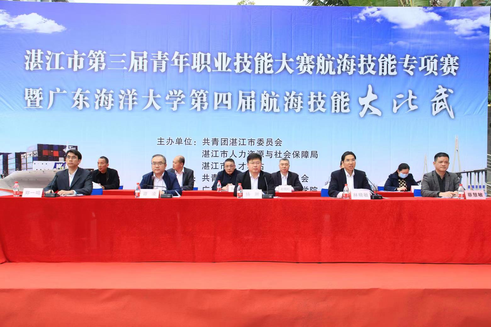 12月3日上午,由团湛江市委、湛江市人力资源与社会保障局、湛江市人才驿站主办,校团委、船舶与海运学院承办的湛江市第三届青年职业技能大赛航海技能专项赛暨广东海洋大学第四届航海技能大比武在我校湖光校区西湖小广场举行。学校党委书记杨洲、党委副书记林晓敏、团湛江市委书记谭凌、湛江市人力资源和社会保障局二级调研员蔡慧敏出席开幕式。杨洲宣布比赛正式开始,并为海上操艇竞赛鸣锣开赛。校党委办、校团委、船舶与海运学院有关领导及比赛指导老师、裁判员、参赛选手等共200余人出席开幕式。开幕式由校团委书记郑一鸣主持。