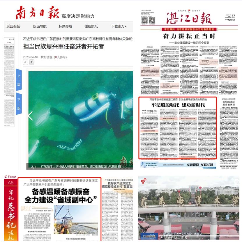 学校党委书记杨洲表示:“我们要把学习贯彻习近平总书记视察广东重要讲话、重要指示精神,与贯彻落实党的二十大精神和党中央决策部署结合起来,与深入开展学习贯彻习近平新时代中国特色社会主义思想主题教育结合起来,推动总书记重要指示要求落实落地。”接下来,学校要贯彻落实总书记关于“做精做好种业”要求,攻关培育高品质涉海生物品种(系),助力广东种业振兴。贯彻落实总书记关于“建设海上牧场”要求,通过构建包括“装备平台-养殖技术-精深加工-预警监测-产业经济”的现代化海洋牧场技术体系,助力广东打造“蓝色粮仓”。贯彻落实总书记关于“加强教育和人才培养”要求,优化学科专业结构,突出“大海洋学科专业群”的建设,完善协同育人机制。学校将进一步主动对接地方经济发展需求,助力行业企业转型升级,提升社会服务质量,为广东在推进中国式现代化建设中走在前列作出贡献。
