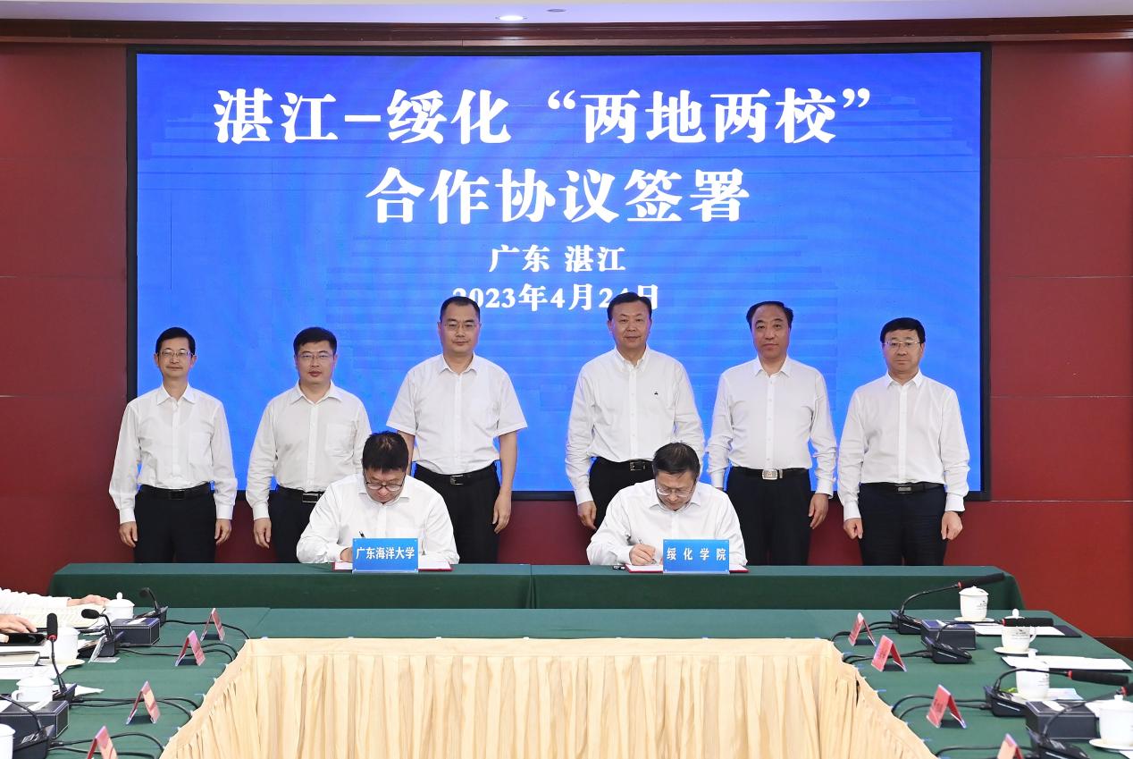 4月24日,湛江-绥化对口合作工作座谈会在湛江召开,两市深入学习贯彻习近平总书记关于对口合作的重要指示精神,认真落实广东黑龙江对口合作工作座谈会、产业合作与开放交流大会精神,共商新征程上深化对口合作发展事宜。会上,我校与绥化学院签订了《绥化-湛江“两地两校”合作协议》。湛江市委书记刘红兵主持座谈会并讲话,绥化市委书记张宝伟出席会议并讲话。学校党委书记杨洲、绥化学院党委书记刘峰分别作发言。