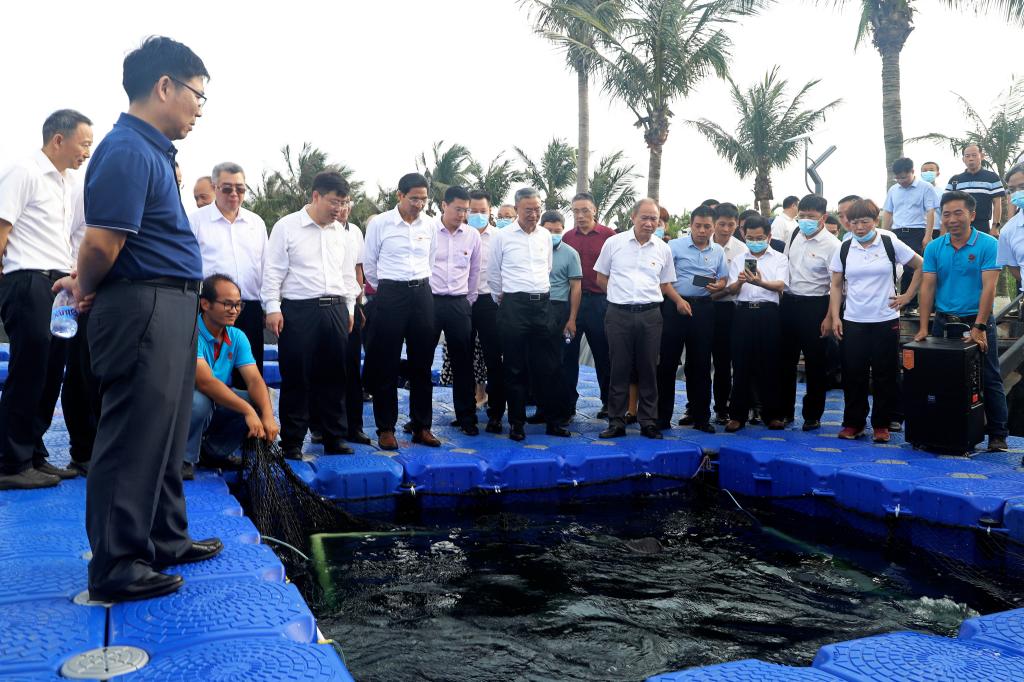 为扎实开展学习贯彻习近平新时代中国特色社会主义思想主题教育,4月28日下午,学校组织副处级以上干部到国家863计划项目海水养殖种子工程南方基地(简称国家863计划种子基地)开展主题教育读书班现场研学活动,沿着总书记的足迹,深入学习贯彻习近平总书记视察广东重要讲话、重要指示精神,感受新时代职责使命,激发干事创业活力。国家863计划项目海水养殖种子工程南方基地运营负责人、恒兴集团董事长陈丹热情接待了我校主题教育读书班一行。校党委书记杨洲出席活动并讲话。学校领导林晓敏、邓逢光、林宇,副处级以上干部共120多人参加了活动。