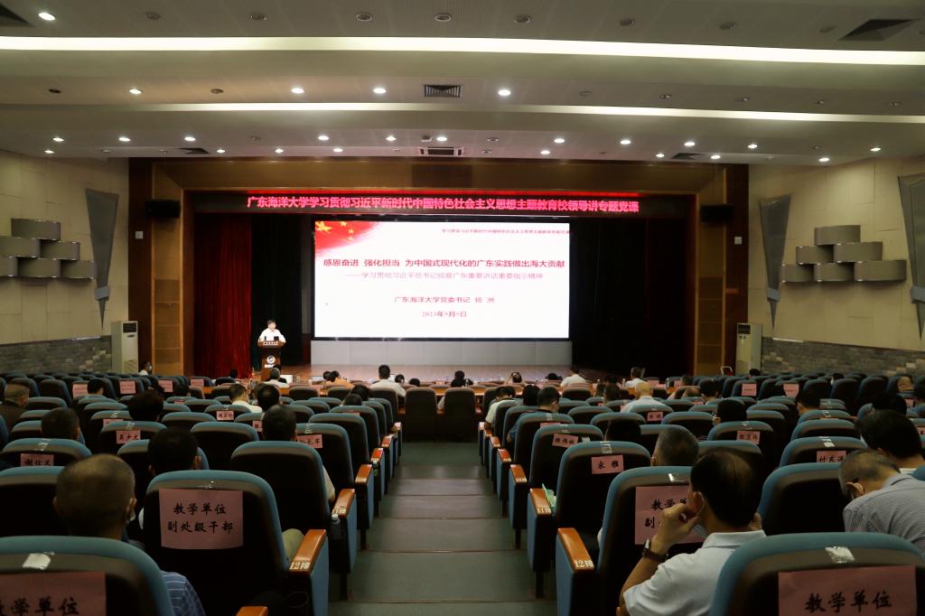 杨洲强调,要统一思想、强化担当,以高质量科技与人才供给服务海洋强省建设。他结合学校实际,提出要从四个方面把学习宣传贯彻习近平总书记视察广东重要讲话重要指示精神落到实处。一是突出重点难点,强化协同攻关,着力突破行业产业关键技术。二是突出涉海优势,深化校地合作,服务县域经济高质量发展。三是坚持疏近用远,促进生态发展,服务“绿美广东”建设。四是优化学科专业,深化教育改革,为全面建设海洋强省提供人才支撑。
