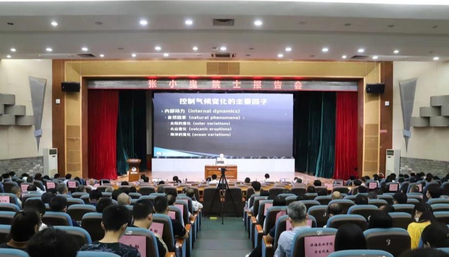 为深入学习贯彻习近平生态文明思想,贯彻落实习近平总书记视察广东重要讲话重要指示精神,引导全校干部师生心怀“国之大者”,在服务经济社会高质量发展中展现新担当彰显新作为,根据主题教育理论学习安排,5月16日上午,我校邀请中国工程院院士、中国气象科学研究院研究员张小曳,以及其团队成员、中国气象局温室气体及碳中和监测评估中心(简称“碳中和中心”)常务副主任、我校1988届气象专业校友王德英,分别为学校师生作专题报告。校长潘新祥主持报告会。校领导、副处级以上干部,湖光校区、海滨校区和阳江校区各单位、部门的师生员工分别通过线上线下形式参加了报告会。