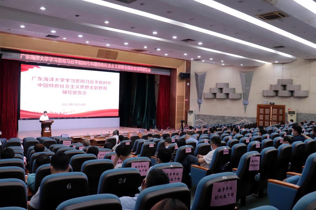 根据学校主题教育读书班计划安排,5月24日下午,学校在湖光校区广学楼多功能厅举行主题教育专题辅导报告会。学校党委书记杨洲主持报告会,全国人大代表、学校党委常委、副校长、党委理论宣讲团成员宁凌教授作了题为“深入学习贯彻习近平总书记视察广东重要讲话重要指示精神,为广东在推进中国式现代化建设中走在前列作出海大贡献”的辅导报告。报告会以线上线下相结合的形式举行,校领导潘新祥、林晓敏、高秀梅、谭北平、林宇和全校副处级以上干部现场参加学习,其他党员干部在线上参加学习。