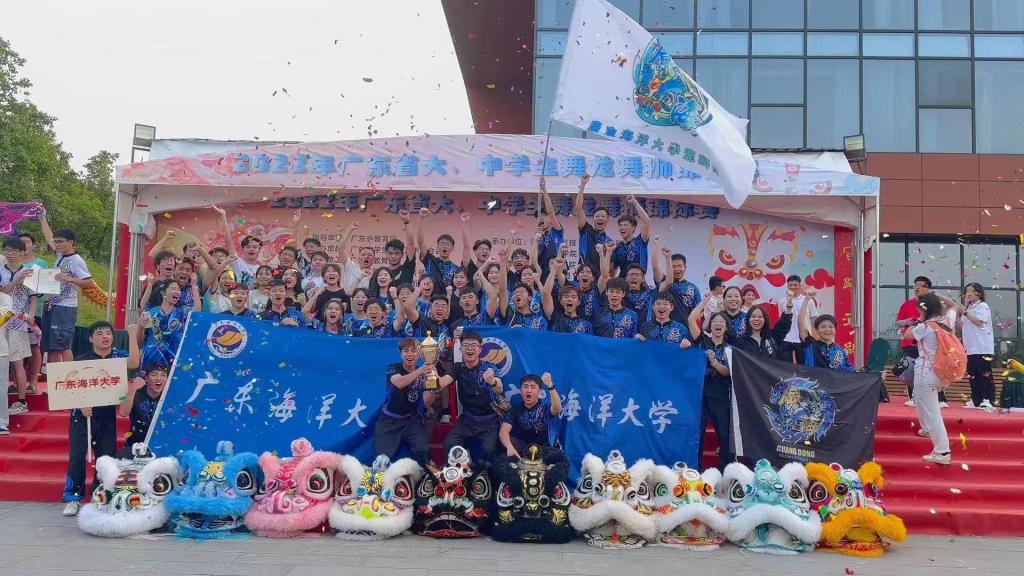 5月19日,2022年广东省大、中学生舞龙舞狮锦标赛在广州市黄埔区长洲岛海宇龙狮龙舟文化传习基地开幕。我校龙狮队成员在本次比赛中展现了卓越的实力和顽强拼搏的体育精神,取得了甲组男子群狮第一名,甲组传统女子单狮第一名,甲组女子群狮第二名,甲组传统男子单狮第四名,甲组女子舞龙第三名,甲组男子舞龙第五名,乙组传统男子单狮第四名的佳绩。以总分56分登顶积分榜榜首,取得了广东省大学生舞龙舞狮锦标赛甲组团体总分第一名的辉煌成绩,夺得甲组团体冠军。