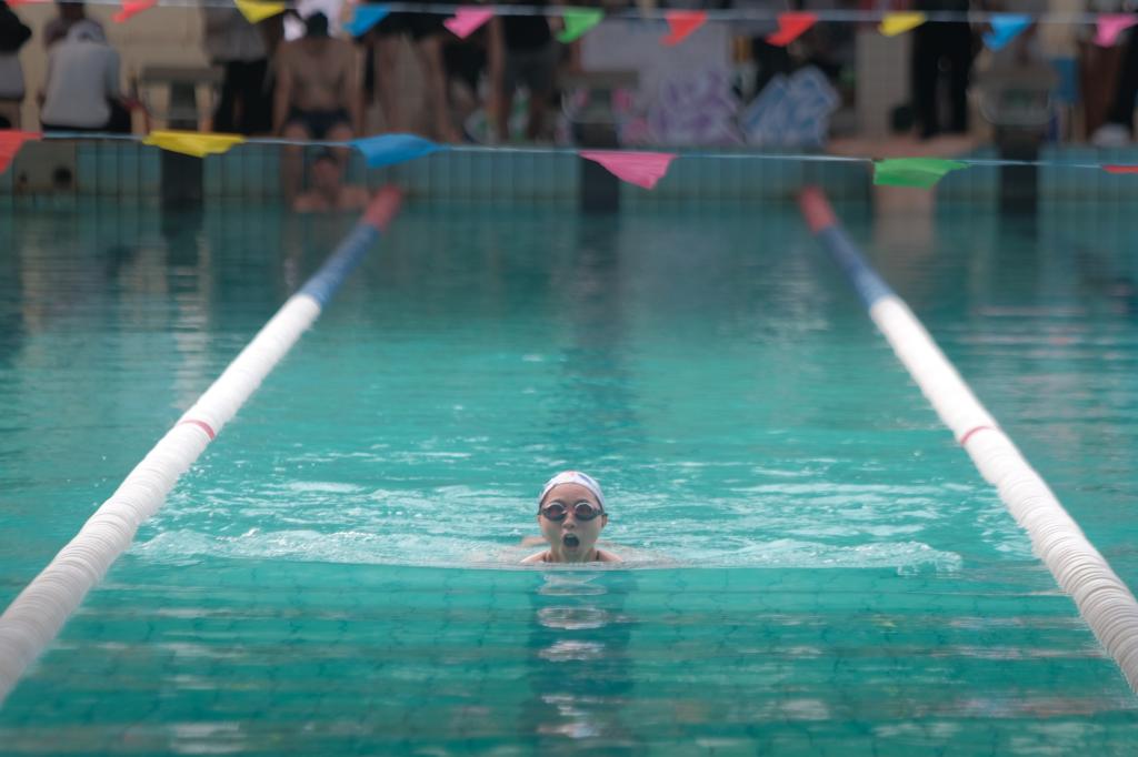 “加油加油!冲刺!双手碰壁!”闻声而去,正在进行的项目是女子蛙泳50米第一组,6号道的播音1201李灏怡在水中举起、落下,扬起漂亮的水花,用最快的速度向前冲刺。最终,以领先20米的优势获得了第一。作为学校游泳队一员的她表示,这可能是大学时期最后一次参加比赛,因此很珍惜这次的比赛机会。游泳其实是一个很享受的过程,能够磨练意志,使我们无论做什么事情都有耐心。