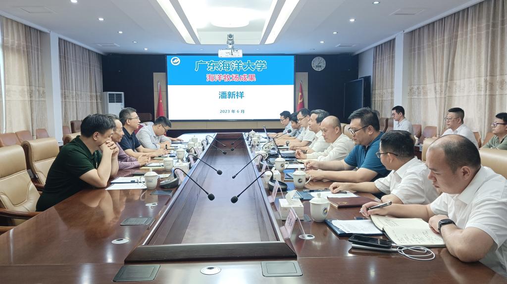 校领导对马强一行的到来表示热烈欢迎,并系统介绍了学校在现代化海洋牧场建设中的阶段性成果。他指出,在海洋牧场领域,海大有专业方向完整的科研团队,学校优势学科与海洋牧场契合度高,相关科研成果行业领先。同时我校有着强大的校友资源,能够推动包括船海工程、水产养殖、食药开发等行业龙头企业对接合作,围绕海洋牧场产业链各环节布局技术力量,进一步推进海洋牧场建设实现决策科学化、养殖现代化、作业智能化、管理信息化、环境生态化、预警精准化、储运鲜活化和加工多样化等八大目标,有效助力广东现代化海洋牧场建设,推动实现海洋渔业强省的总目标。