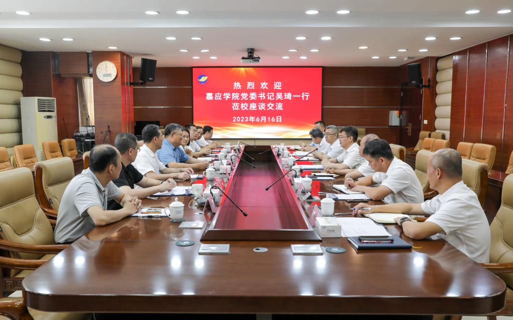 6月16日,嘉应学院党委书记吴琦率副校长张丽霞、廖志成和党委办校长办、学生工作处、科研处、后勤处等部门负责人一行8人来我校就开展主题教育、党建工作、科研学科、社会服务等进行调研。学校党委书记杨洲、副校长邓逢光等与吴琦一行进行了座谈交流。