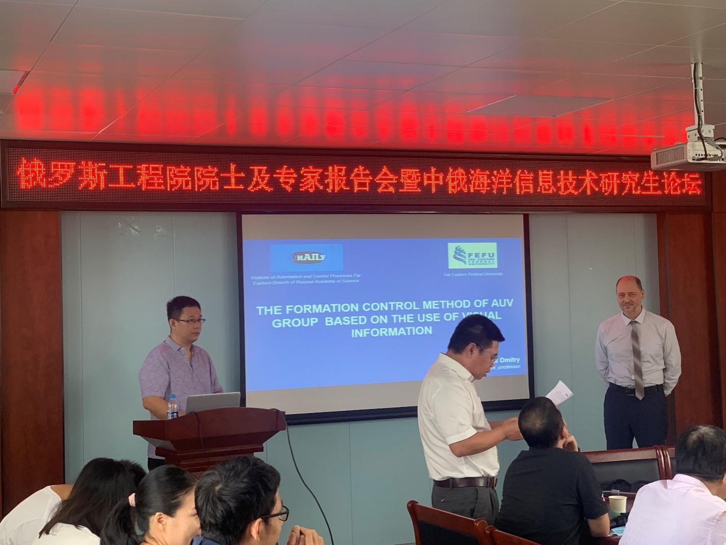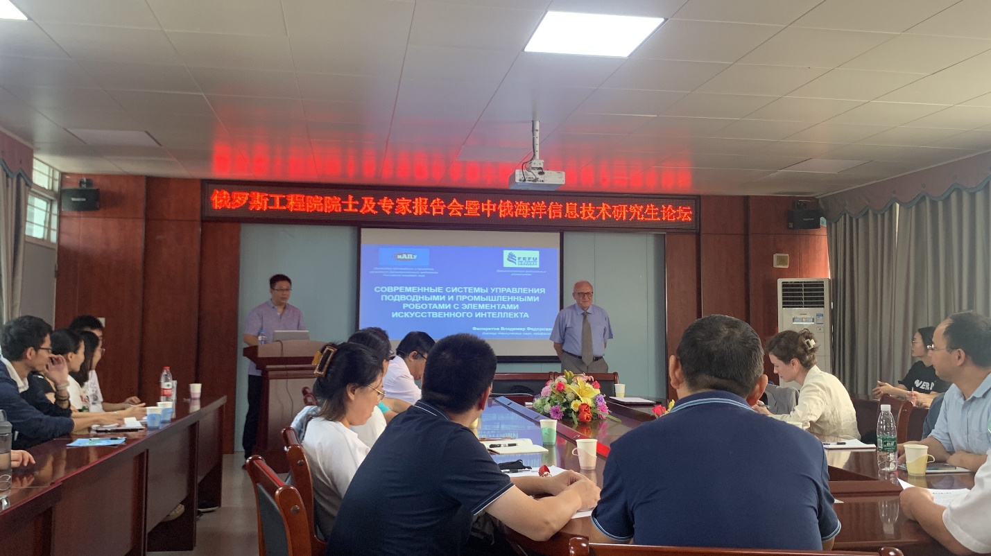 为加强国内外交流,提高研究生学术研究及创新能力,6月18日-21日,电子与信息工程学院举办俄罗斯工程院院士及专家报告暨中俄海洋信息技术研究生论坛。本次特别邀请俄罗斯工程院院士费拉雷托夫教授、俄罗斯科学院远东分院自动化与过程控制研究所首席科学家尤西梅茨教授、圣彼得堡国立海洋技术大学5名专家和我校青年博士教师作主题报告。我校电子与信息工程学院、船舶与海运学院教师、硕士研究生约50人参加活动。