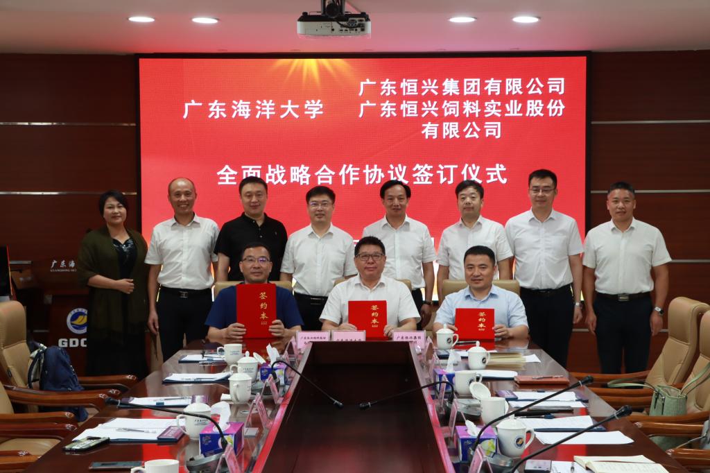 7月3日上午,我校与广东恒兴集团有限公司(以下简称“恒兴集团”)、广东恒兴饲料实业股份有限公司(以下简称“恒兴股份”)全面战略合作协议签约仪式在湖光校区行政楼五楼会议室举行。党委书记杨洲、恒兴集团董事长陈丹出席会议并致辞,仪式由副校长谭北平主持。